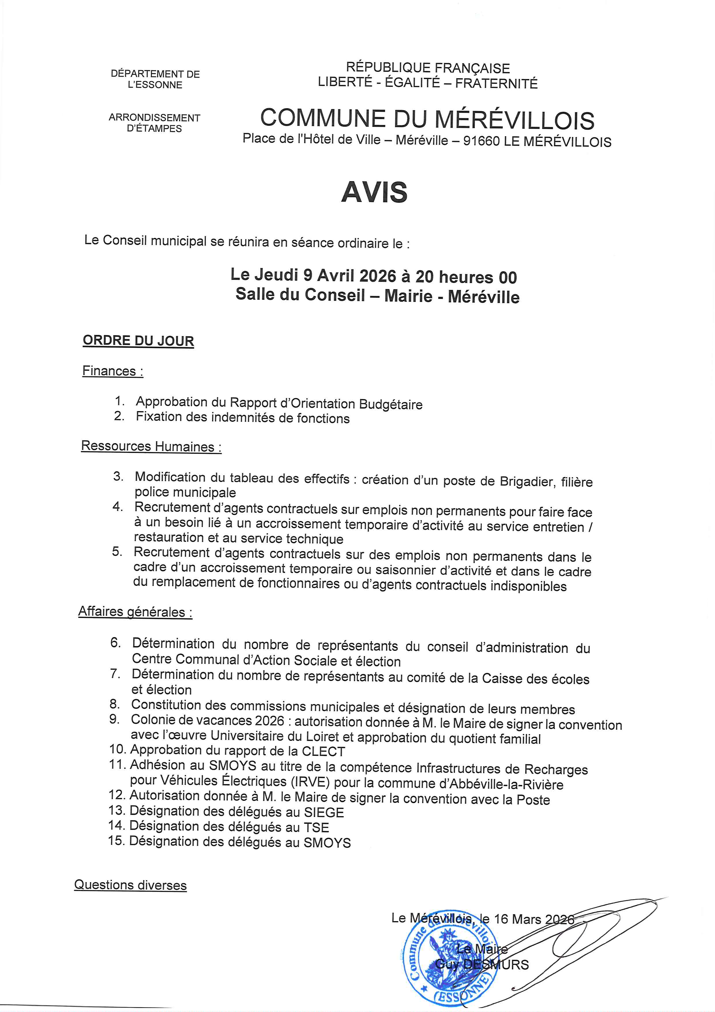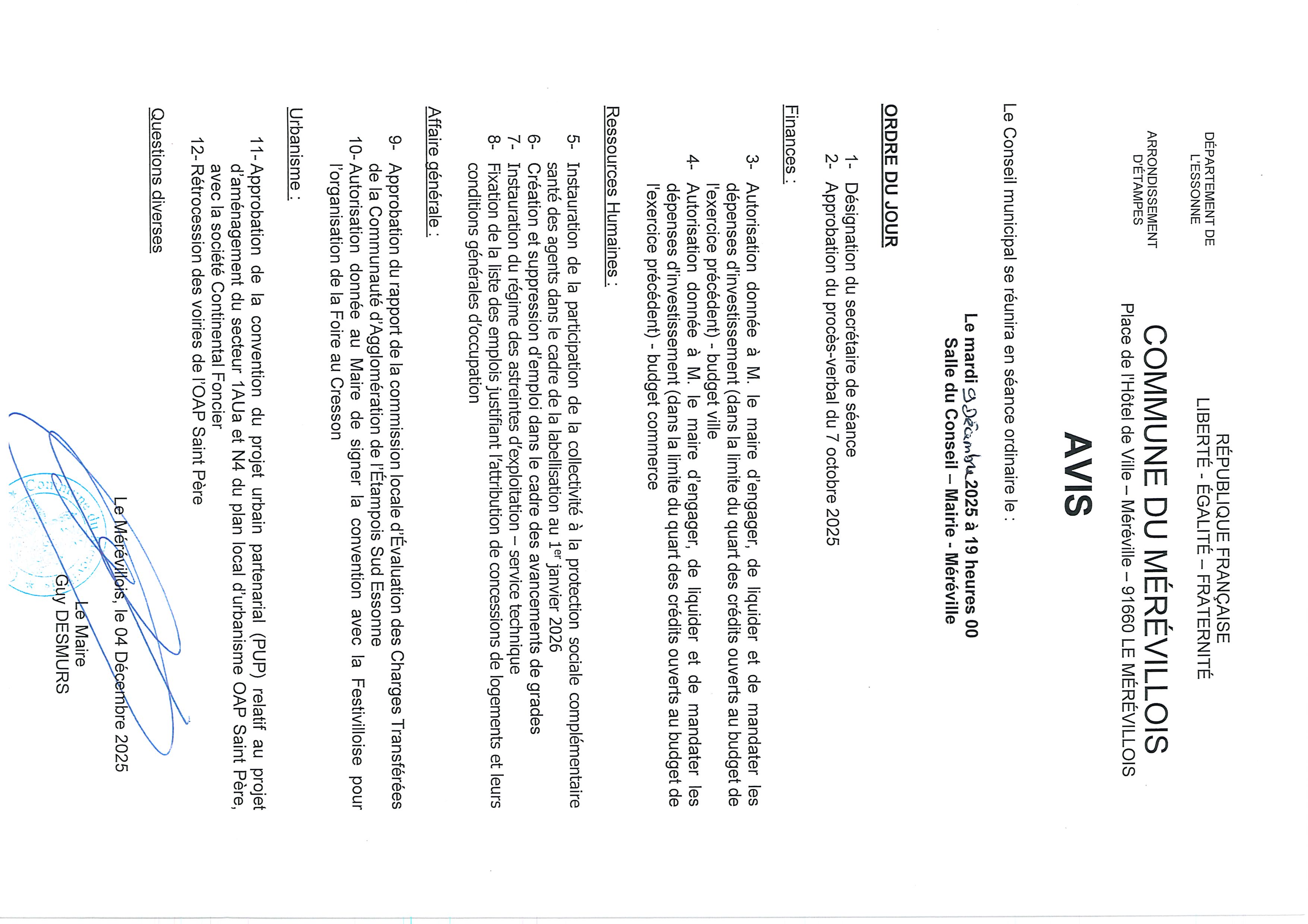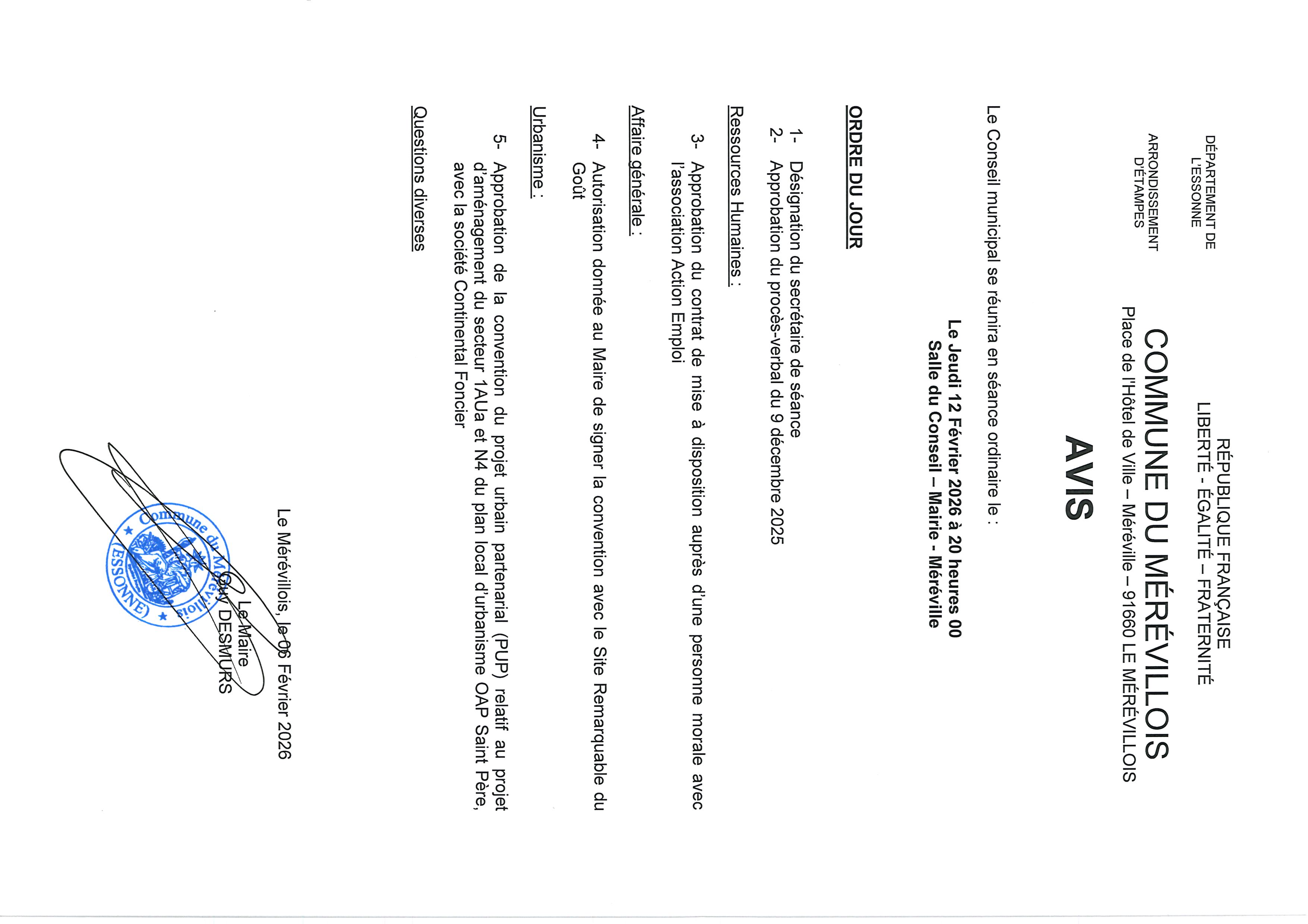Date du prochain conseil municipal